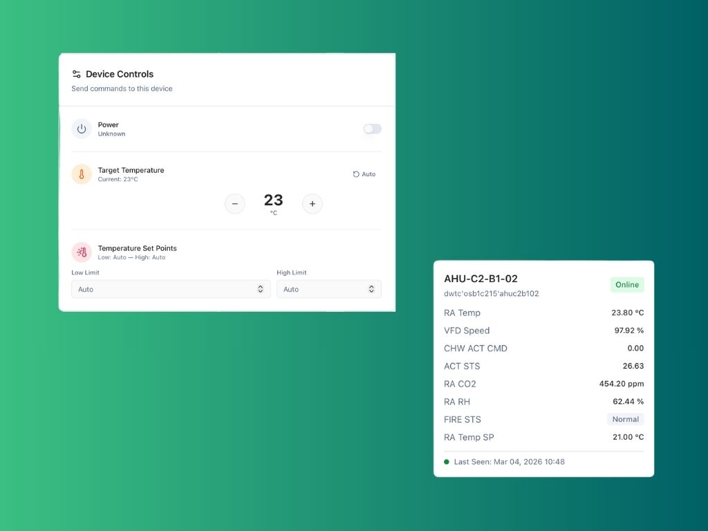 Connect to your current BMS and building systems to detect faults early, cut HVAC waste, and turn alarms into clear actions, with AI-assisted diagnostics, prioritization, and recommendations, remotely and securely, with optional safe control when you are ready.
