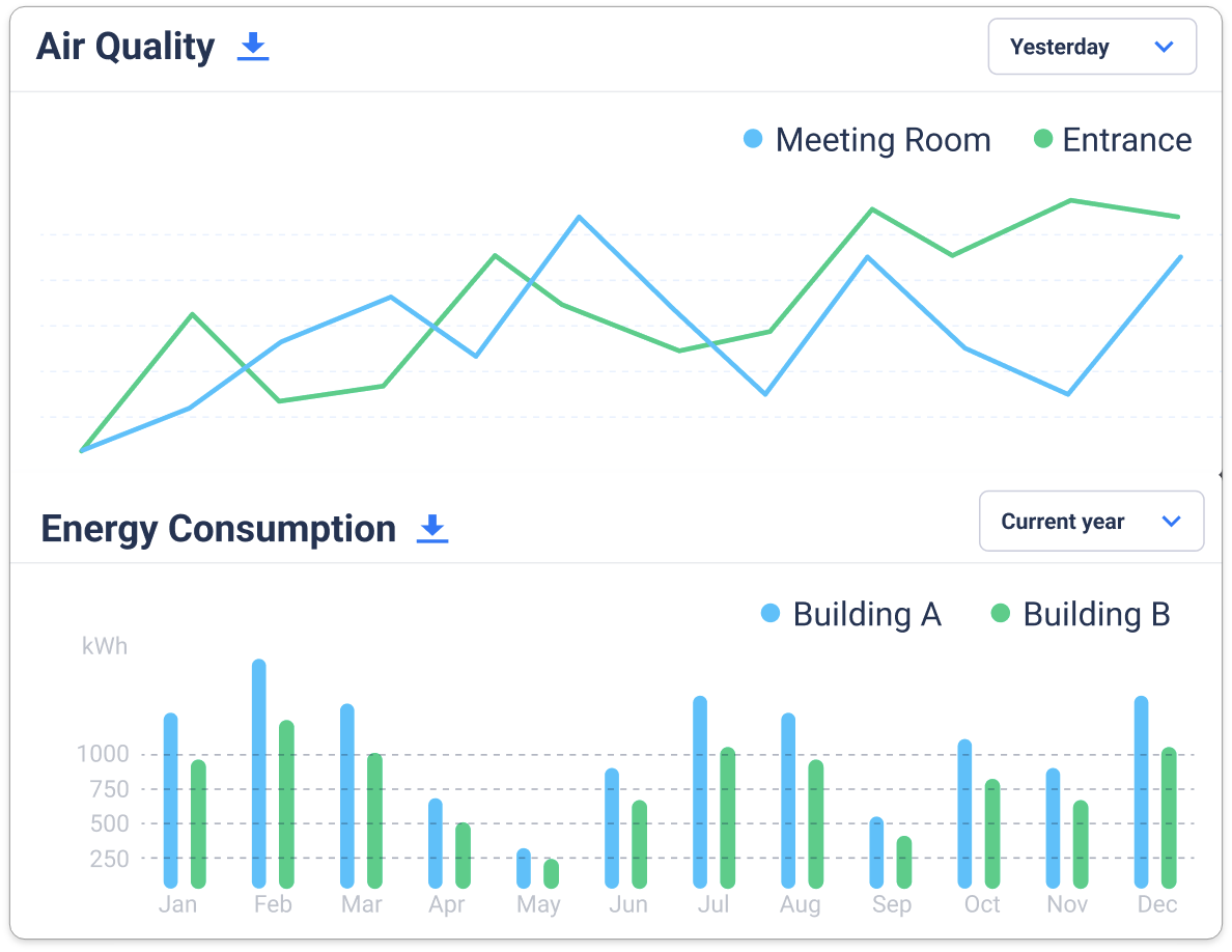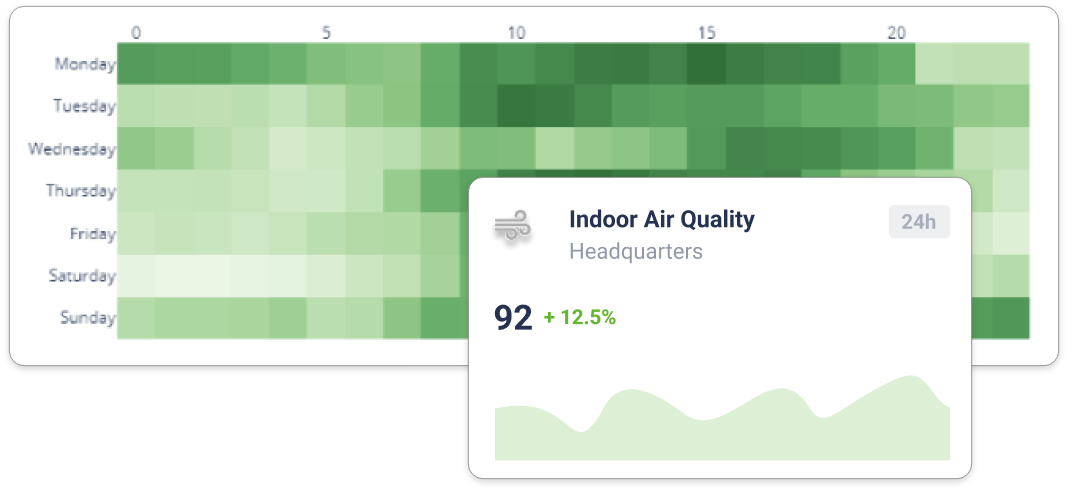 Experience powerful visualization tools to analyze the vast amount of IoT data collected from various sensors throughout the building. Discover critical details about energy consumption, indoor air quality, and occupancy patterns via interactive dashboards and real-time data visualization and identify patterns and anomalies.